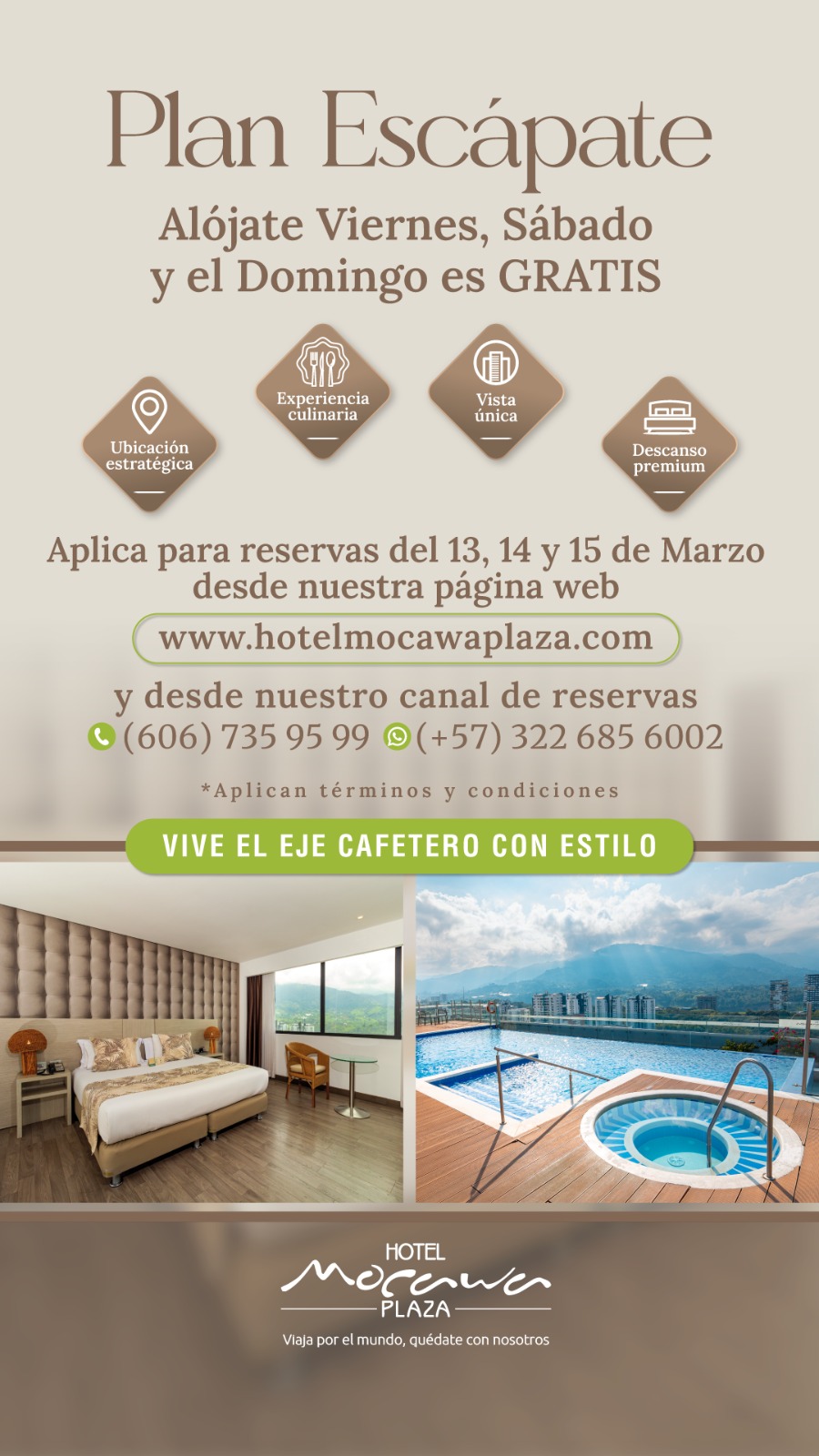 Dirección: Hotel Mocawa Plaza, Carrera 14 No. 9 Norte – 00, Armenia, Quindío | Colombia. RNT 58589.