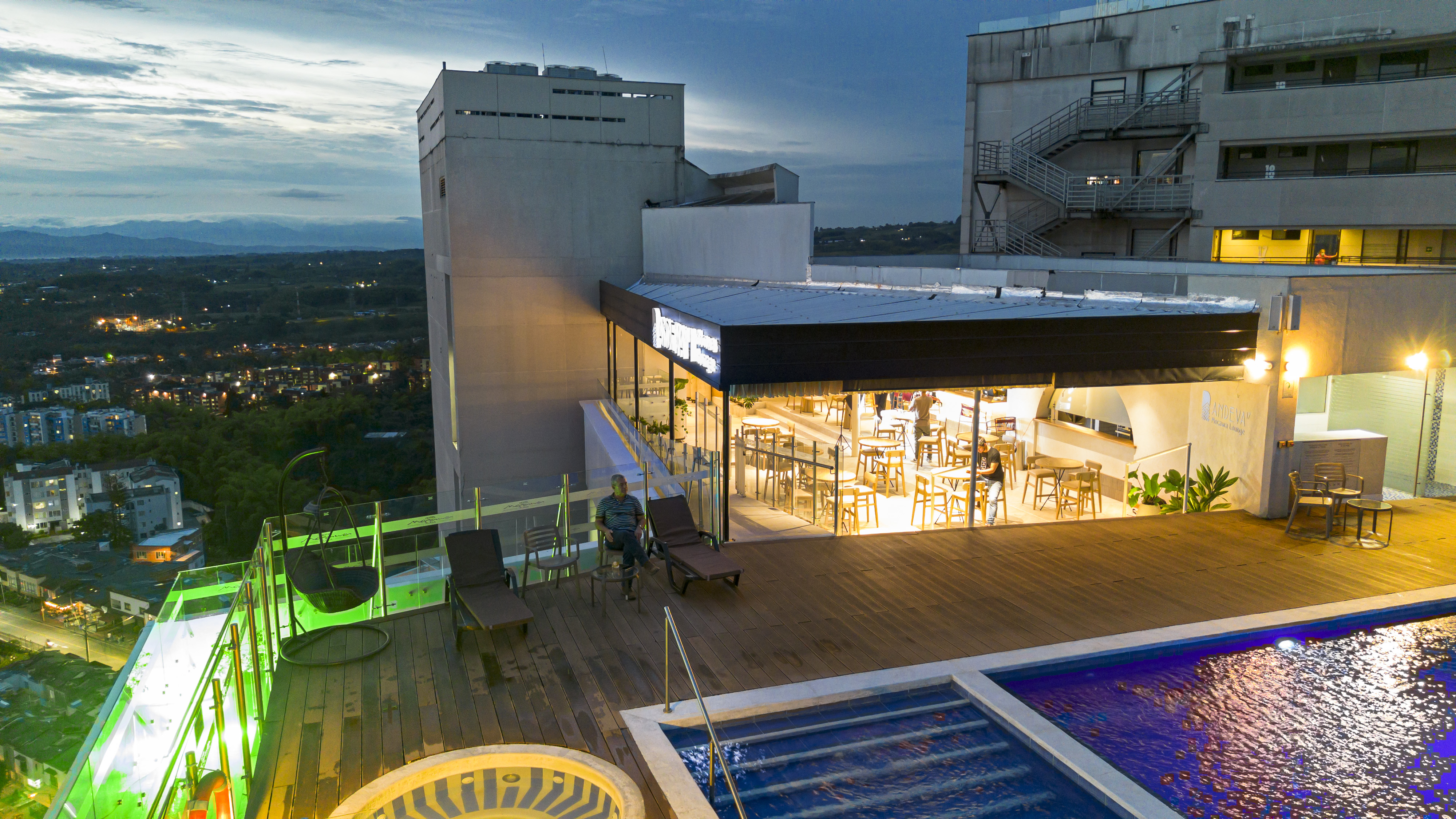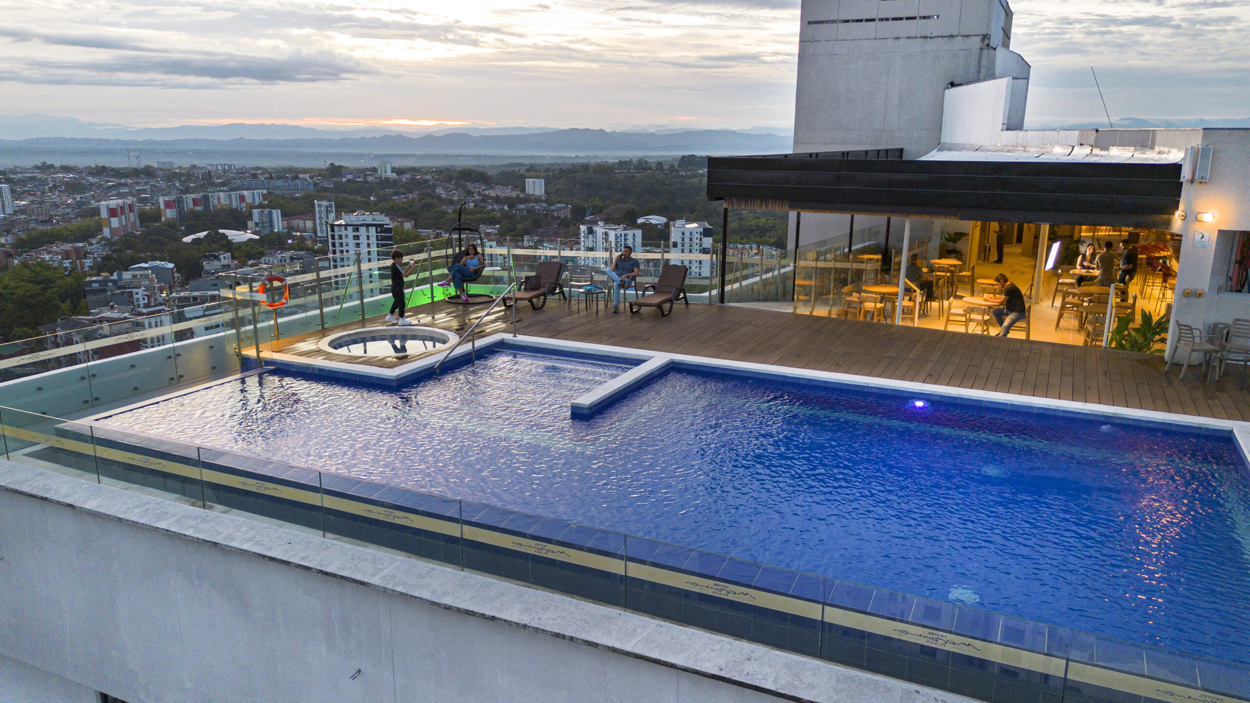 Pocas sensaciones pueden ser más gratificantes y relajantes que darse un baño con la sensación de encontrarse en una piscina sin fin. Inspírate en el Quindío observando el mágico Paisaje Cultural Cafetero mientras te relajas en la piscina infinita, o en el jacuzzi del piso 17 del Hotel Mocawa Plaza, mientras vives una experiencia sensorial única.